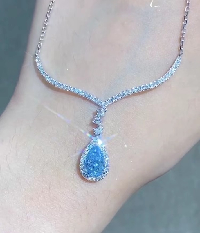 ब्लू पीर 18K व्हाइट गोल्ड डायमंड क्लैरिटी VVS2 ज्वेलरी प्रोडक्शन एंगेजमेंट ज्वेलरी लैब डायमंड नेकलेस