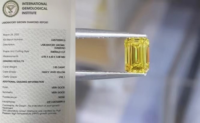 पन्ना ढीला हीरा, फैंसी ज्वलंत पीला, वीवीएस-वीएस, उत्कृष्ट, आईजीआई प्रमाणित