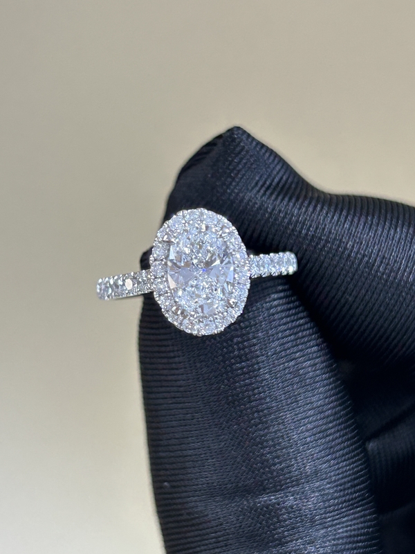 अंडाकार आकार प्रयोगशाला विकसित हीरा अंगूठी PT950 सफेद हीरा अंगूठी हेलो अनुकूलन के साथ