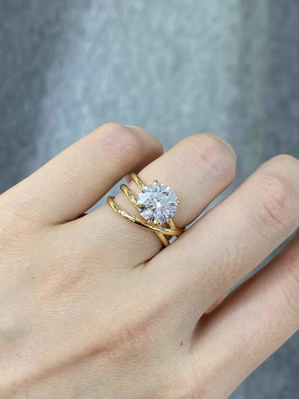 अनूठा डिजाइन गोल कट लैब उगाया हीरा अंगूठी 18k पीला सोना फैशन